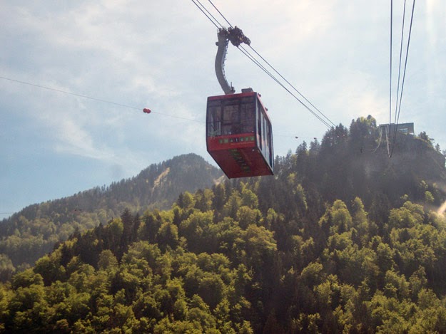 Today we made an excursion to Dornbirn (part of our district, but still in another country - Austria) to take a gondola ride up the side of a mountain. It is called Karren and is about 1000 meters in elevation (about 3280 feet), or about a 1600 foot vertical rise from the base. There is a restaurant at the top that is really quite reasonable. We met with the Elders in Dornbirn and all went up together. Several of the missionaries had their lederhosen and posed for some pictures, as you can see. The views from up there are amazing. The pictures here do not do it justice.